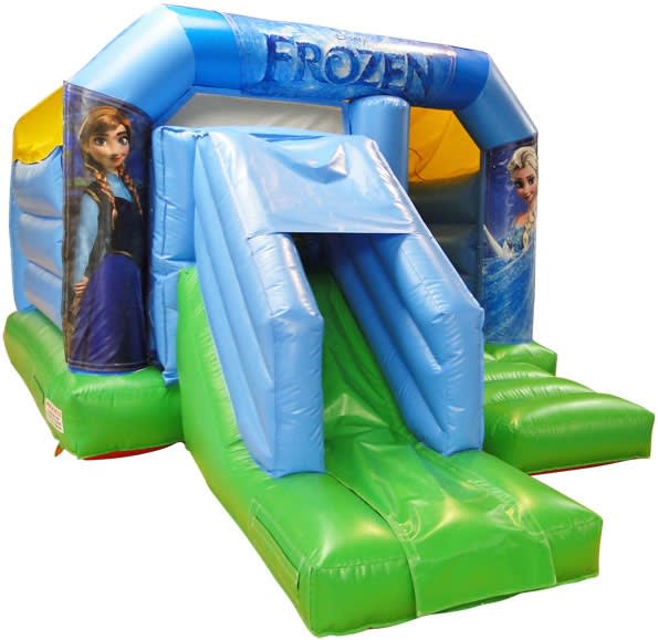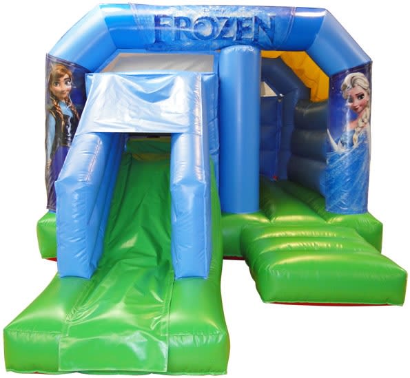 Our very popular Frozen style theme bouncy has Anna and Elsa on the pillars. There is also Olaf on the top banner.