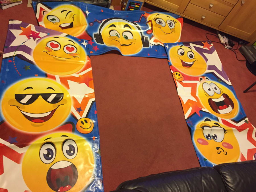 This Emoji theme is similar to the emojis you will see in text. Children will love this modern emoji theme on the front of the bouncy castle at their birthday party. It will be placed on the front of our pink and blue 11ft x 15ft (3.35m x 4.57m).