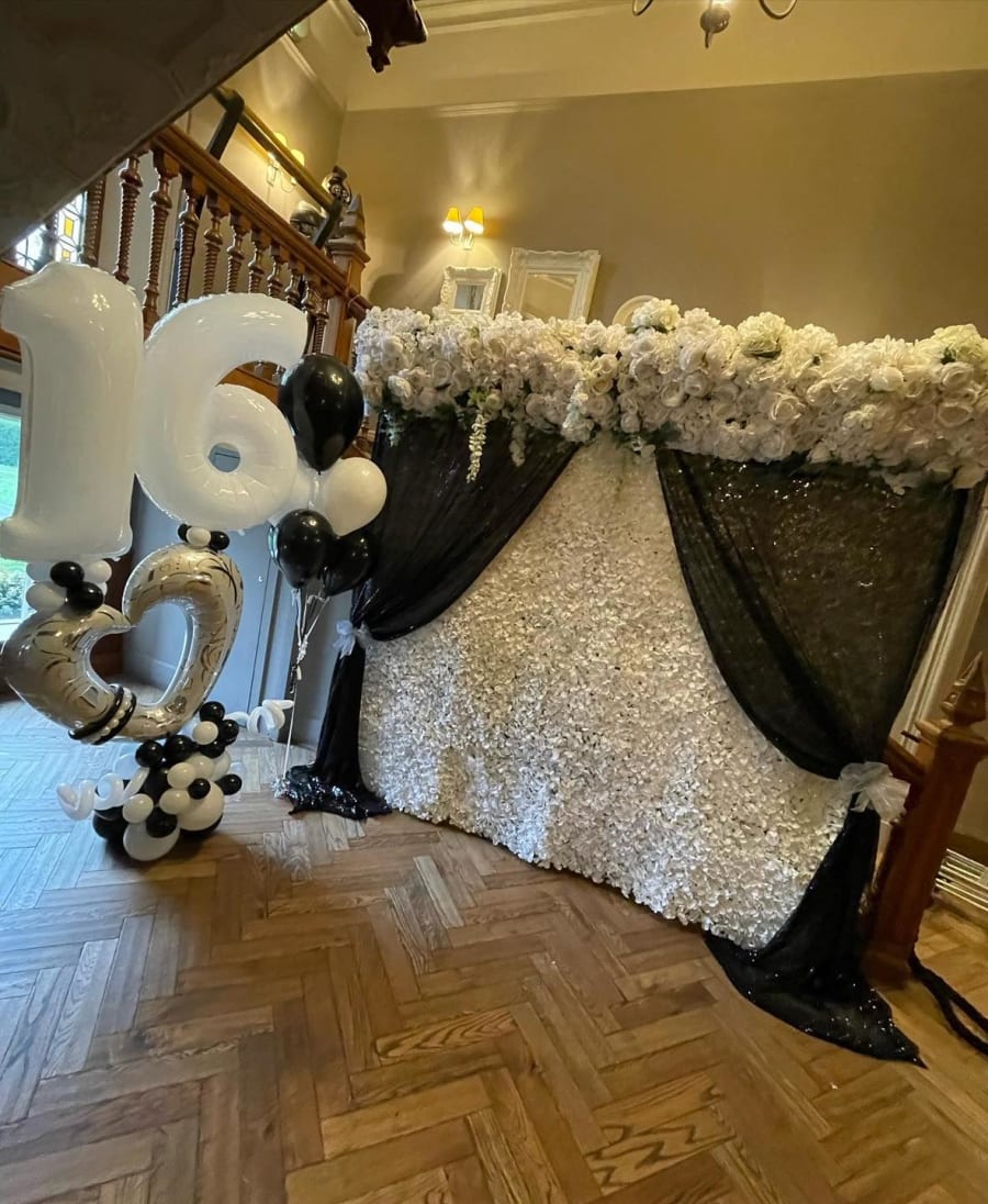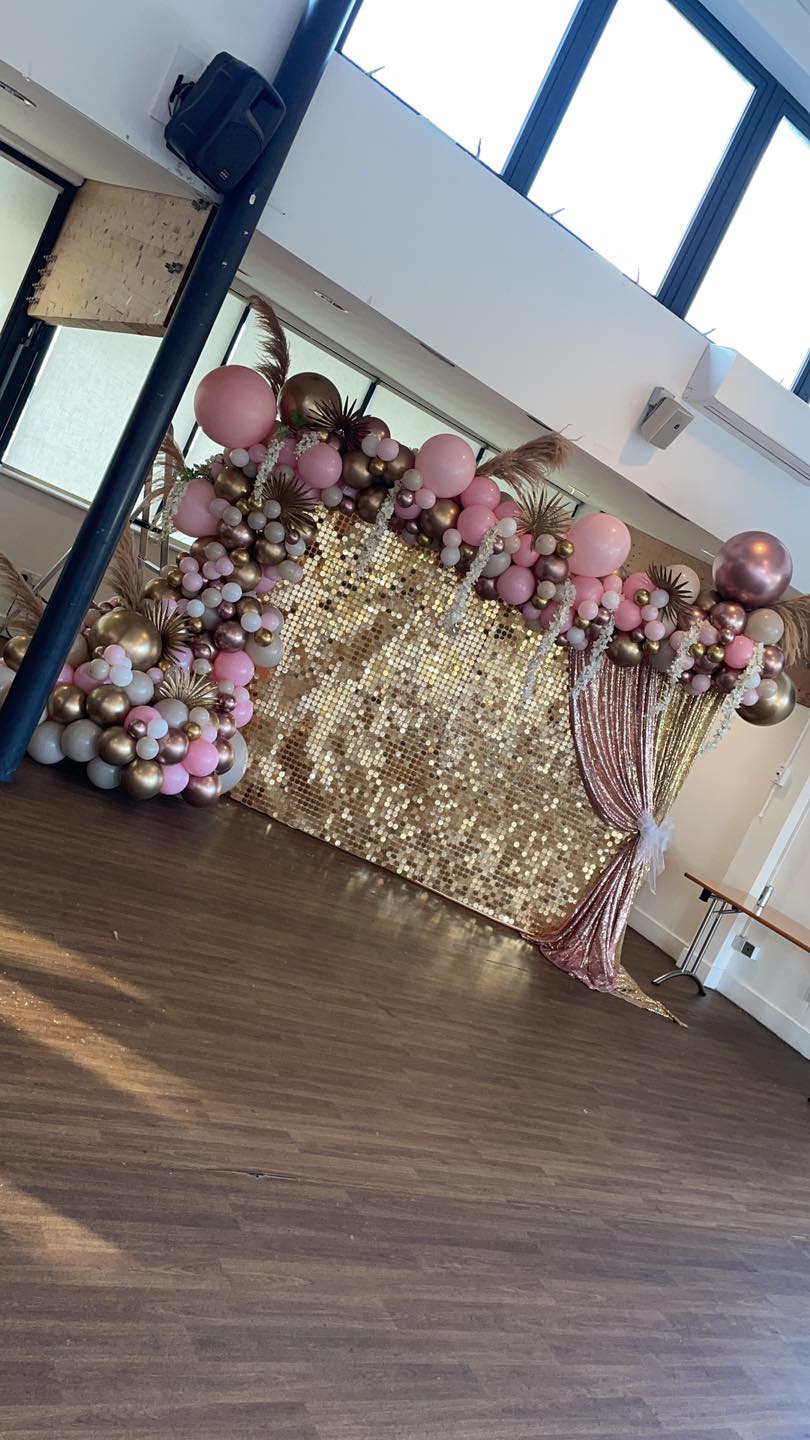 the girls in there will help with suggestions of ballon designs. They also do event table designs with seating covers and table cloths. Flower and balloon walls and room decorating for events.