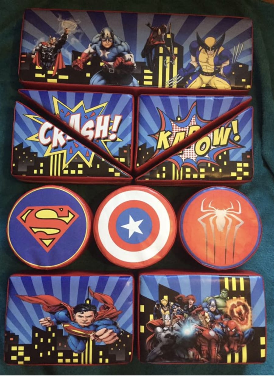 The super hero softplay comprises of foam filled triangles, squares and circle that your toddlers will enjoy playing with encouragement them to use their hand eye coordination and social skills.