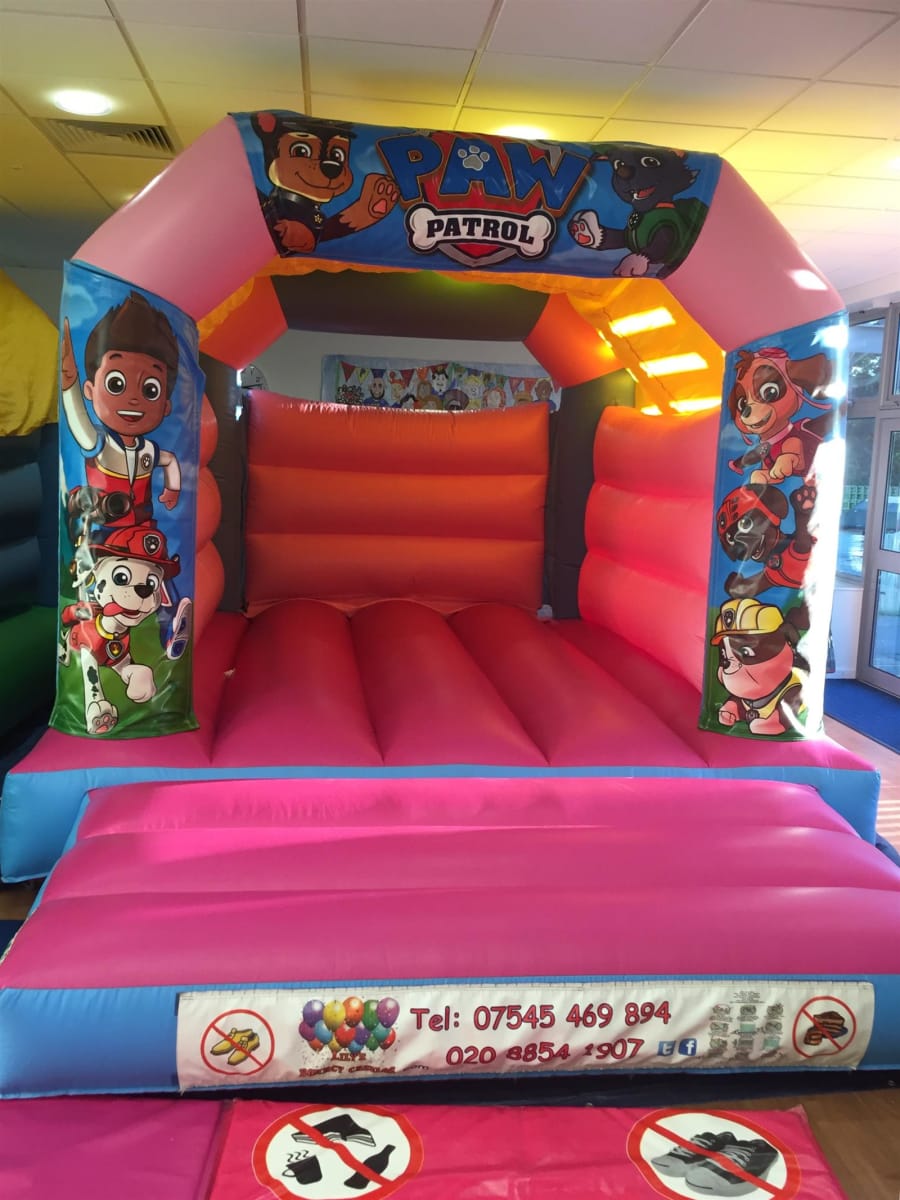 Pink Paw Patrol bouncy castle hire for Welling, Dartford, Bexley, Sidcup, Eltham and their surrounding areas.